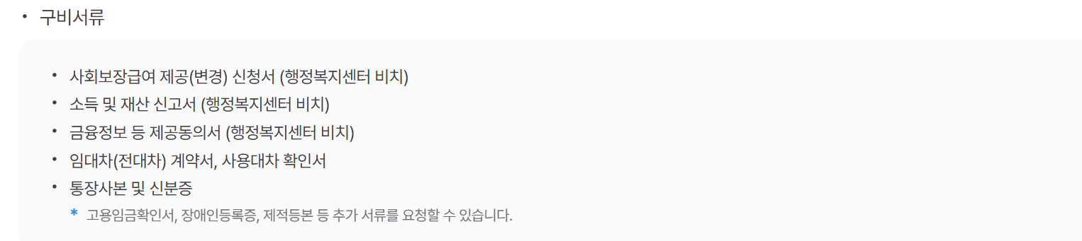 신청서에는 가구원의 소득, 재산, 주거 형태 등을 기재해야 하며, 필요시 추가 서류를 제출해야 할 수도 있습니다.