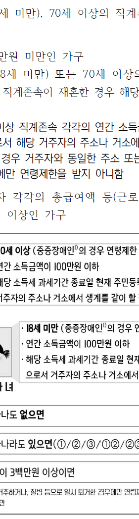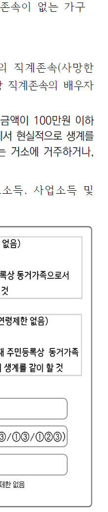 소득 요건은 가구 유형별로 차이가 있습니다.