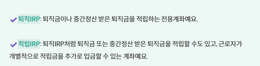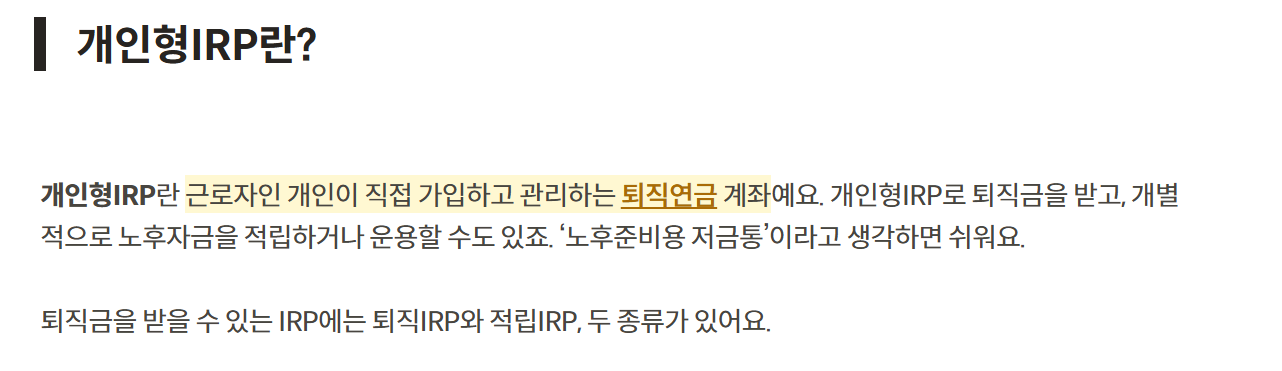 IRP(Individual Retirement Pension) 계좌는 개인형 퇴직연금 계좌로, 퇴직금을 비롯해 추가적인 자금을 입금하여 노후 자금을 마련할 수 있는 금융 상품입니다.