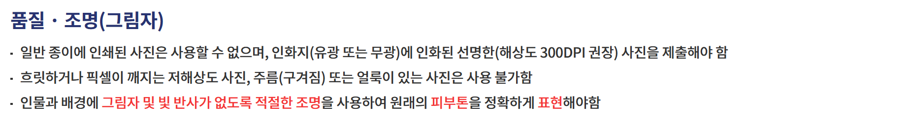 해상도는 300dpi로 권장되며, 흐릿하거나 픽셀이 깨지는 저해상도 사진, 주름이나 얼룩이 있는 사진은 불합격 처리됩니다.